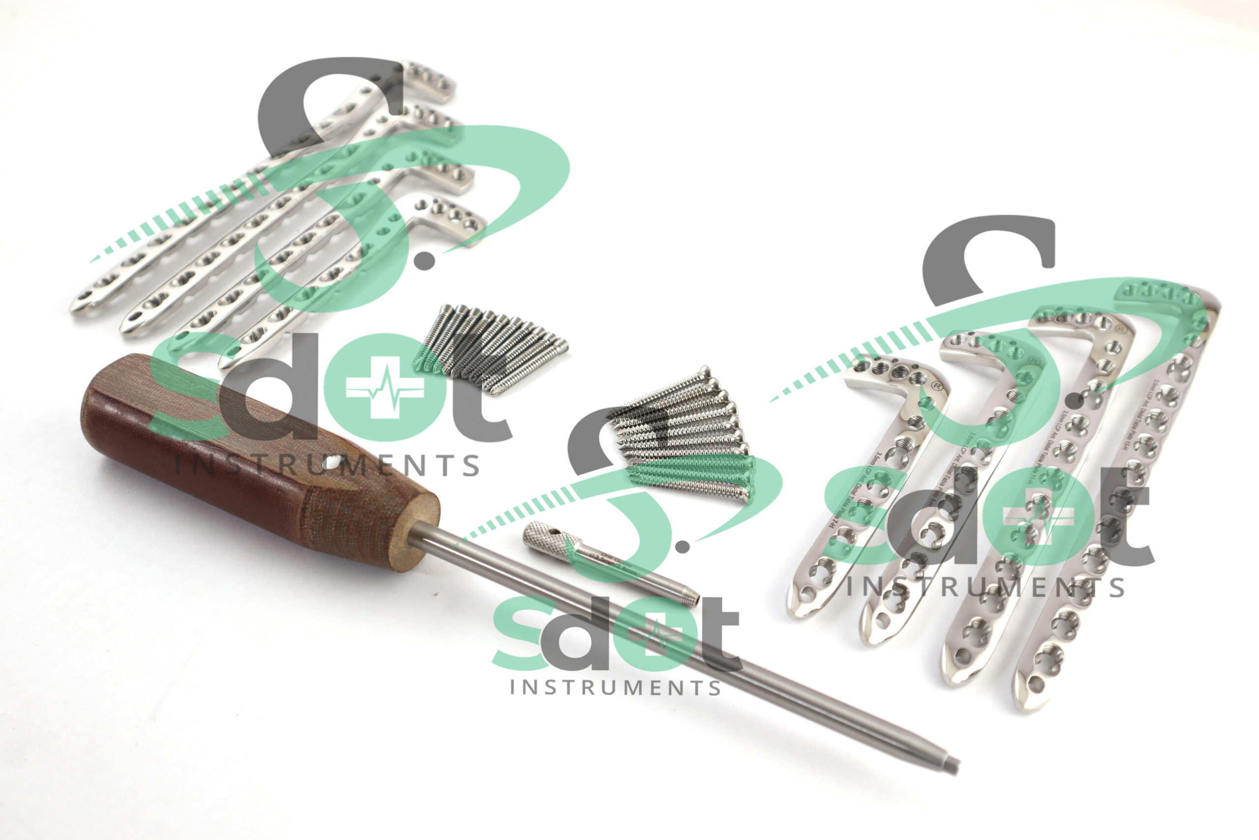 3.5mm LCP Anterolateral Distal Tibia Plates & Locking Cortical Screws, Locking Sleeve + Screws Driver Set of 130PCs By SdOt Instruments