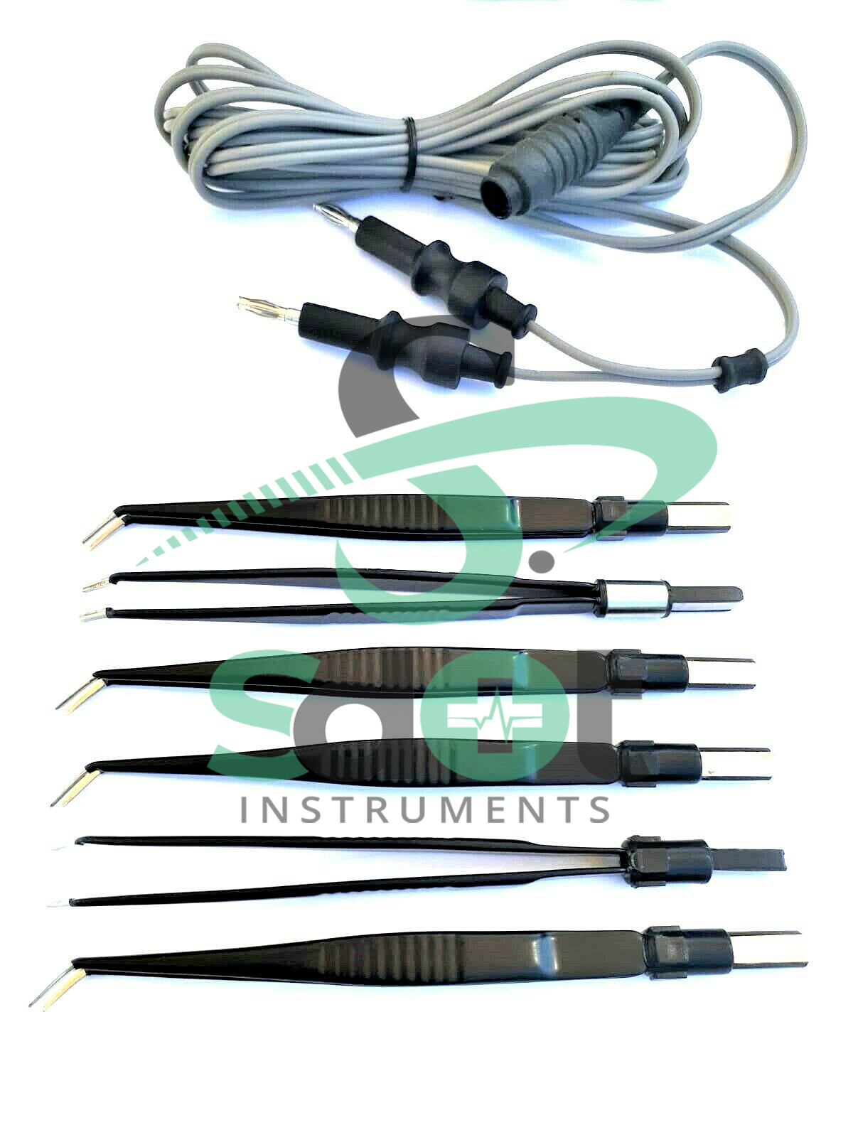 6 X Bipolar Forceps Angled 12CM & 3 MTR Cable Veterinary instruments CE by Sdot Instruments